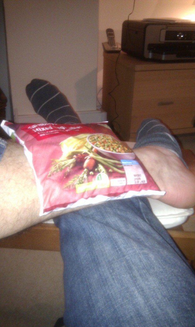 It’s R.I.C.E. time, sadly. Very sore shin.